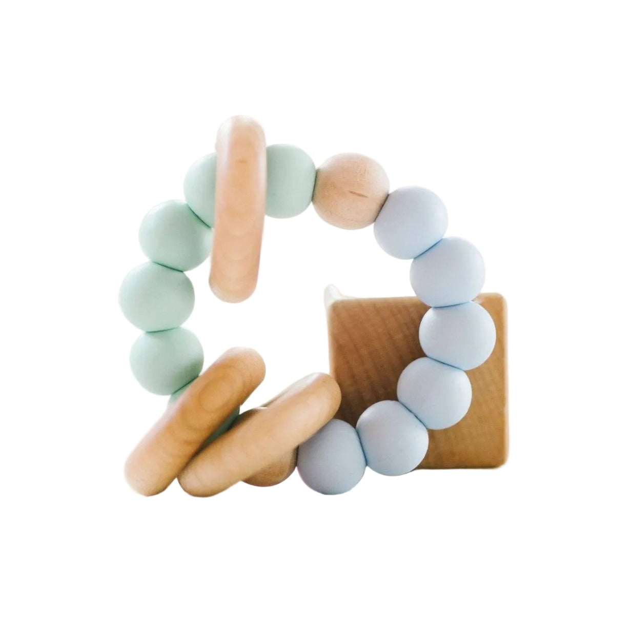 Perfect for a soft sounding rattle and teether in one! These match our color block classic rattle colors, so you'll want to make sure and check out those! These are in soft baby colors! Rings Made from American Hardwood Maple  Naturally antibacterial, non-splintering Silicone is food-grade, BPA free and CPSC approved.