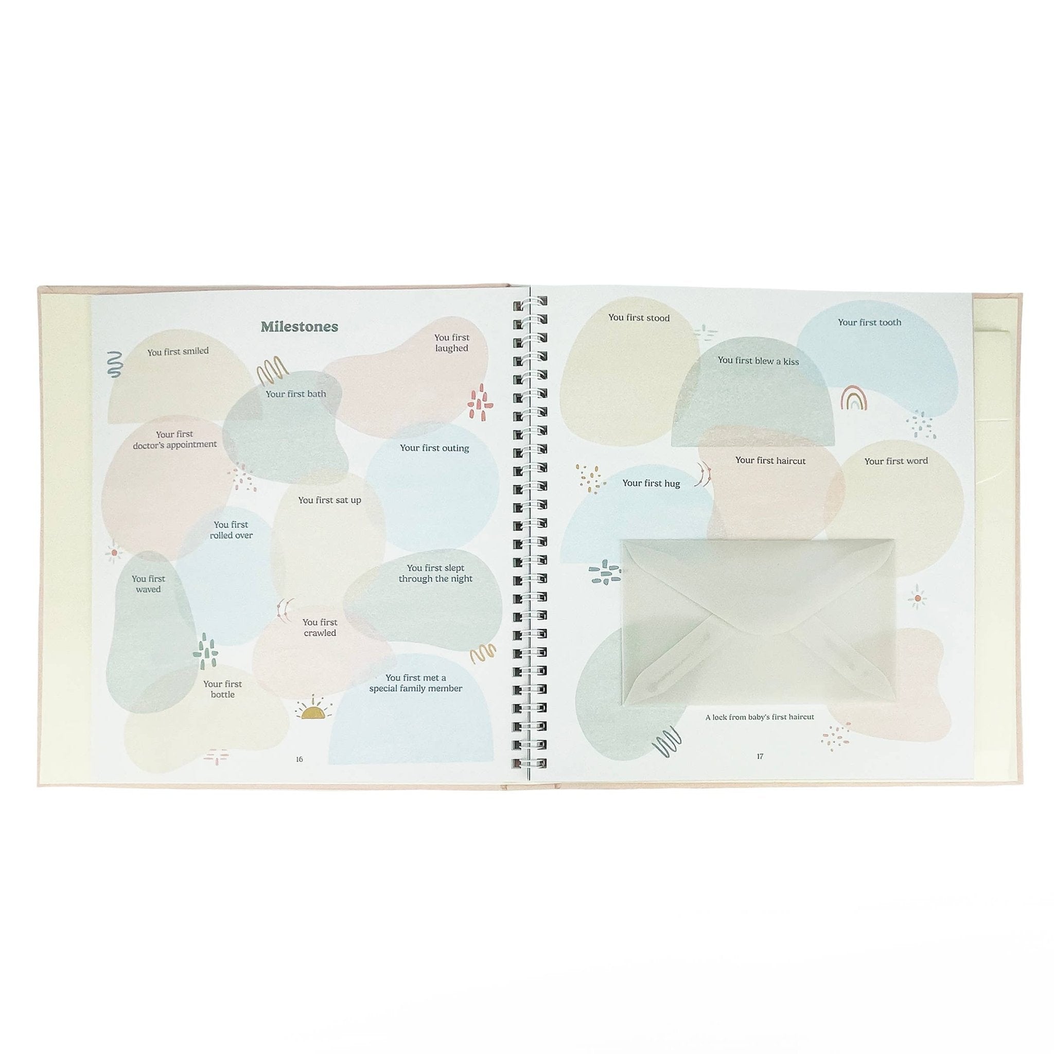 It's a perfect gift for a pregnancy announcement or baby shower. * Box set includes: Concealed spiral 64-page keepsake book with die-cut cover, storage pocket, and two glassine envelopes for storing mementos, 1 foil sticker sheet you can write on, 2 paper sticker sheets you can write on (350 stickers total), 13 die-cut milestone photo cards, and storage box * Beautifully crafted keepsake box makes for a great way to store all your special mementos from photos to footprints.