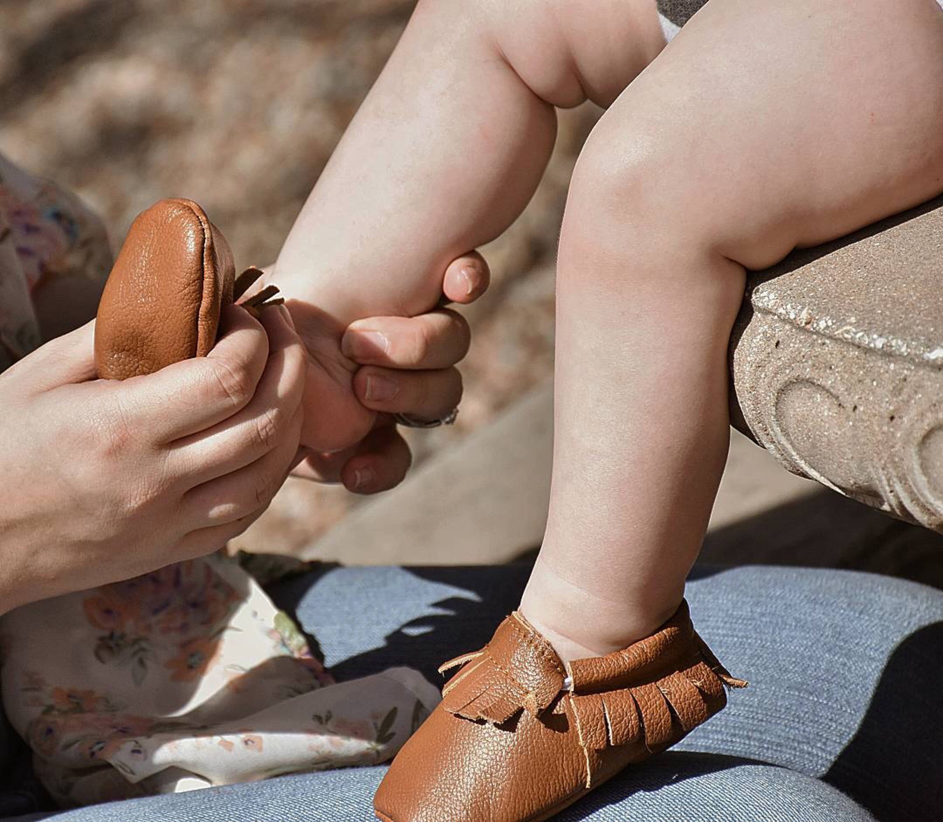 Baby Moccasins - Genuine Leather Baby Shoes (Classic Brown)